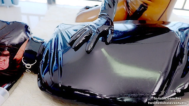オイルをお互いに塗りたくり、興奮が高まったキキとダブ。女王様気質のダブが主導権を握っていきます。彼女はキキをエナメル製の寝袋に押し込みました。まさにエナメルinエナメル!ダブがバキュームで空気を抜くと、キキのボディラインがくっきりと浮かび上がってきました。そんなキキを電マで責めるダブは、キキの顔をラバーフードで覆って呼吸も制御します。そしてこのカップルは二人で果てたのでした。